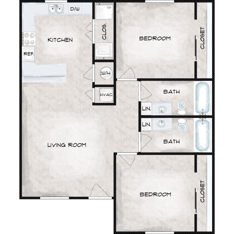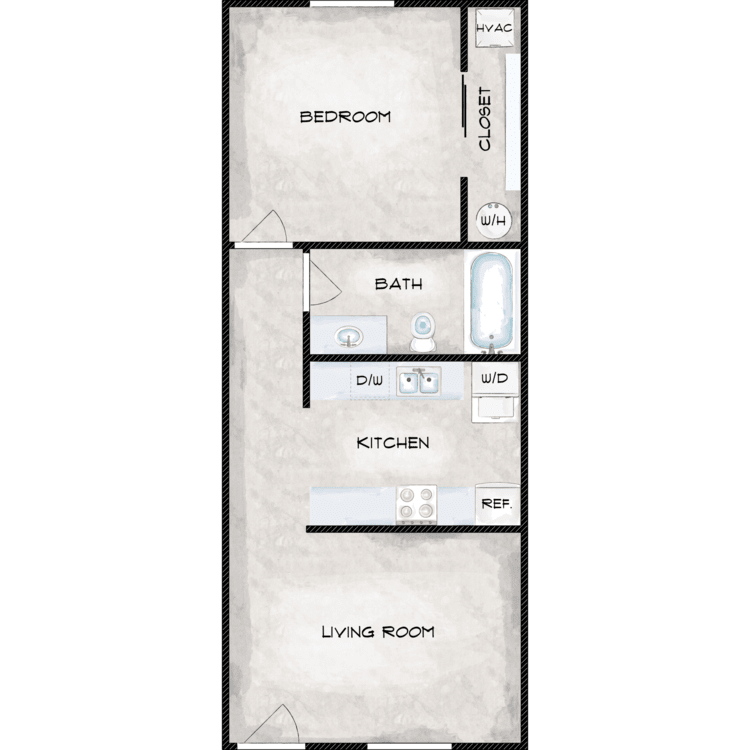 Discover the satisfying lifestyle you've been looking for in our pet-friendly one and two-bedroom apartments for rent. Our floor plans feature central air conditioning, heating, and ceiling fans to keep you cool year-round. Chores are easy with a washer and dryer in your home. Each home is fully furnished and offers some paid utilities, providing a new haven of relaxation.